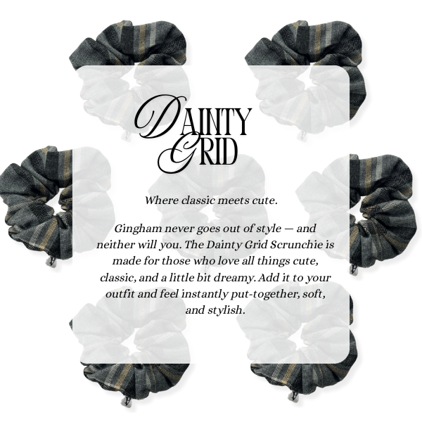 Soft, lightweight, and effortlessly chic — The Dainty Grid Scrunchie brings a touch of modern charm to classic simplicity. Its subtle grid pattern and smooth texture create a refined look that complements any style. Made from soft fabric, it keeps your hair comfortably in place without tugging, perfect for both casual days and graceful moments. 🩰